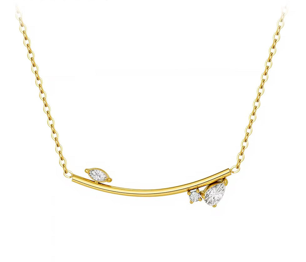 Graceful and understated, the Lumia Arc Necklace showcases a slim gold arc accented with brilliant marquise-cut details. Lightweight, timeless, and designed to never dull, it’s the statement of simplicity every jewelry box needs.