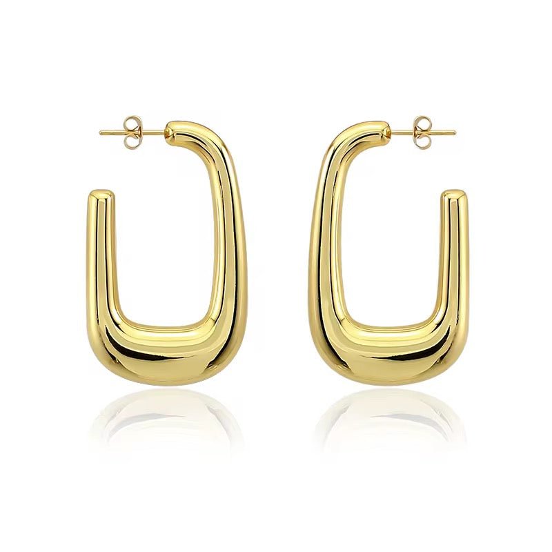 The Lyra Hoop Earrings are a contemporary twist on a timeless design, showcasing an elegant open-hoop silhouette crafted from durable stainless steel with 18k gold plating. These earrings feature a sleek mirror-polished finish, exuding a luxurious shine and modern sophistication. Measuring 45mm in height and 10mm in width, they offer a bold yet wearable statement for any occasion. Lightweight and hypoallergenic, the Lyra Hoop Earrings are perfect for elevating your everyday look or complementing an evening ensemble.